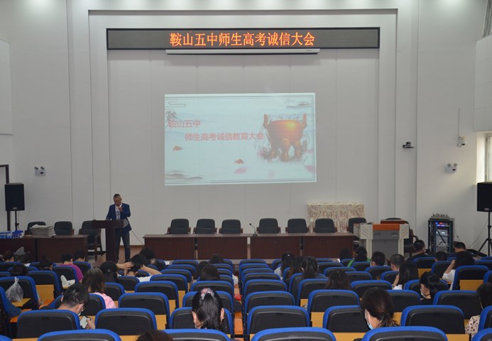 为大力加强高考考风考纪建设,积极培育和践行社会主义核心价值观,加大考风考纪宣传教育力度,强化考试纪律,促进公平公正,营造诚信考试良好氛围,鞍山市第五中学于6月4日下午召开2020年高考师生诚信大会。