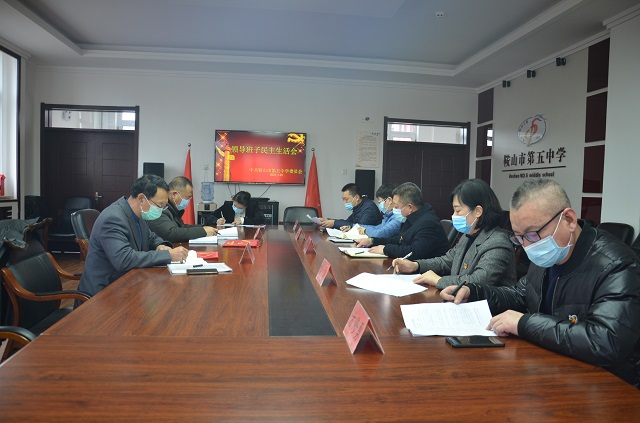 按照鞍山市教育工委下发的《关于认真开好2020年度党和国家机关党员领导干部民主生活会的通知》要求,1月20日上午,鞍山市第五中学召开校党委领导班子专题民主生活会。这次民主生活会的主题是:认真学习贯彻习近平新时代中国特色社会主义思想,加强政治建设,提高政治能力,坚守教育情怀,夺取决胜全面建成小康社会、实现第一个百年奋斗目标的伟大胜利,开启全面建设社会主义现代化国家新征程。教育局督导组成员副局长廖明伟同志、政策法规科科长赵小兵同志莅临指导,校长程立男同志主持会议,办公室主任尚莉丽同志出席会议并做记录。