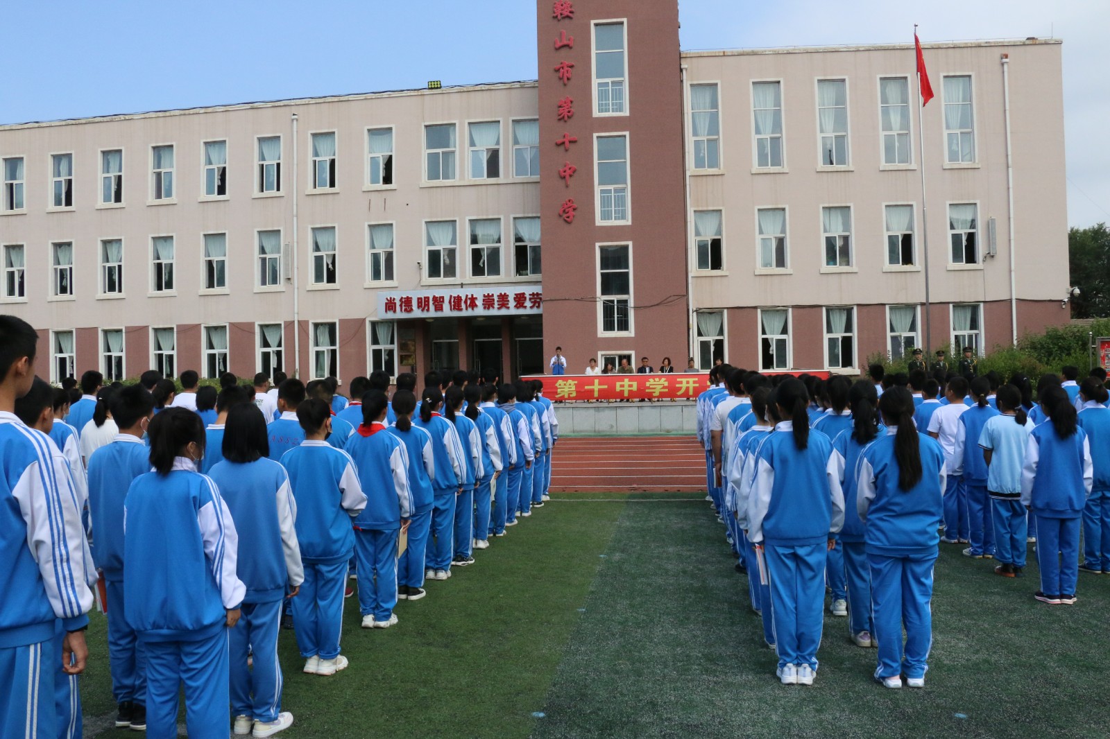 九月八日,鞍山市第十中学举行了隆重的开学典礼。在连续的阴雨后,终于迎来阳光灿烂、秋高气爽的一天,全校师生在操场集合,这次典礼首先进行升国旗仪式,全校师生庄严肃穆,操场上国歌激荡,阳光下五星红旗冉冉升起。